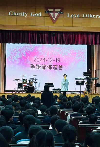 今年的「聖誕崇拜」,以佈道會形式邀請了藝人及歌手王君馨到校跟全校師生作兩場的福音分享聚會及詩歌分享。