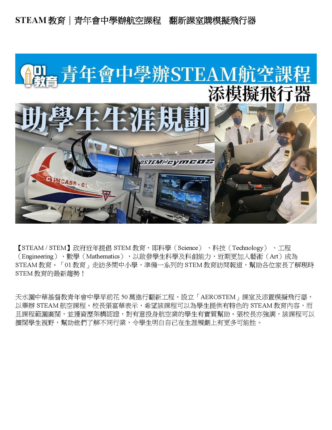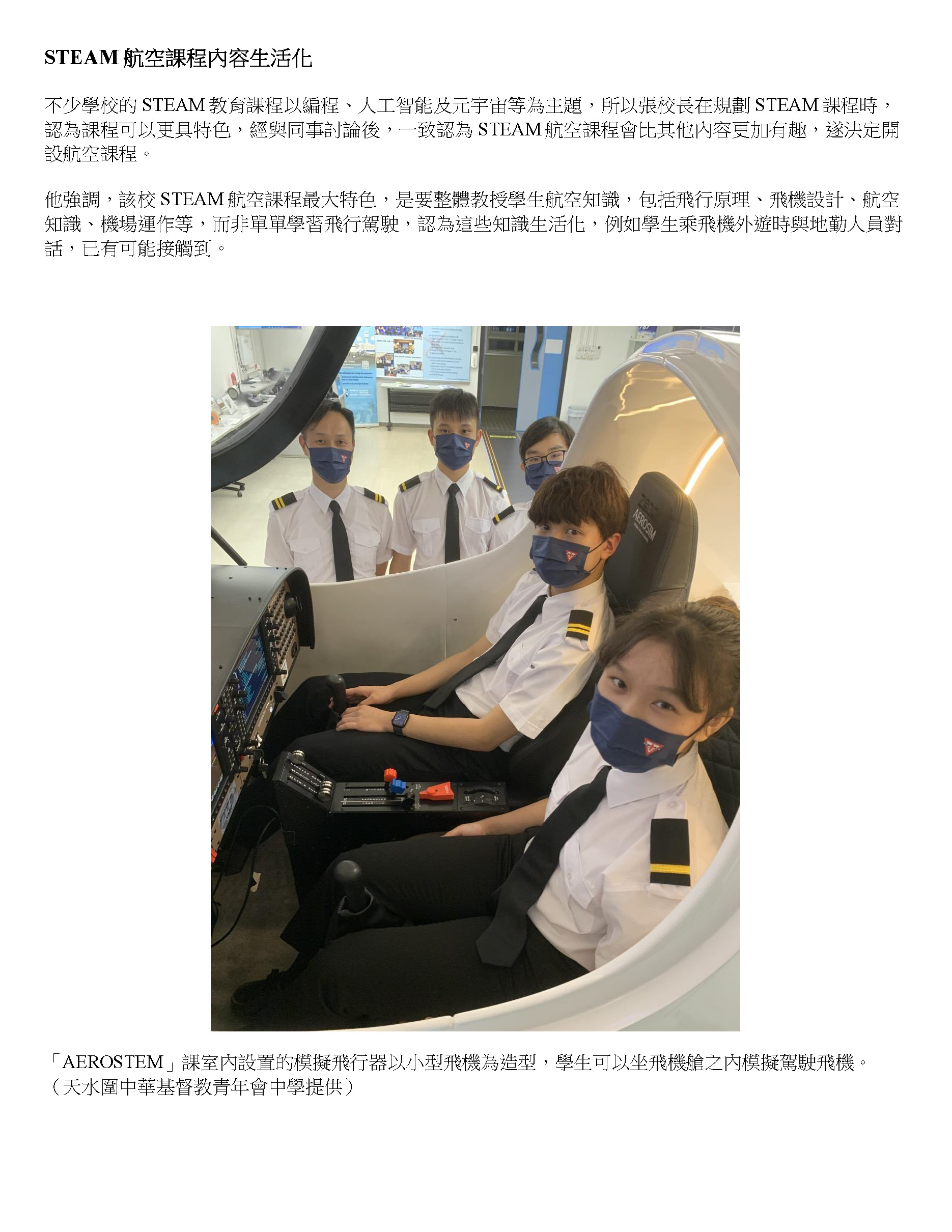 Chinese Y.M.C.A. Secondary School AEROSTEM Education. The first DA40 flight simulator in Hong Kong school to support the Career Life Planning.