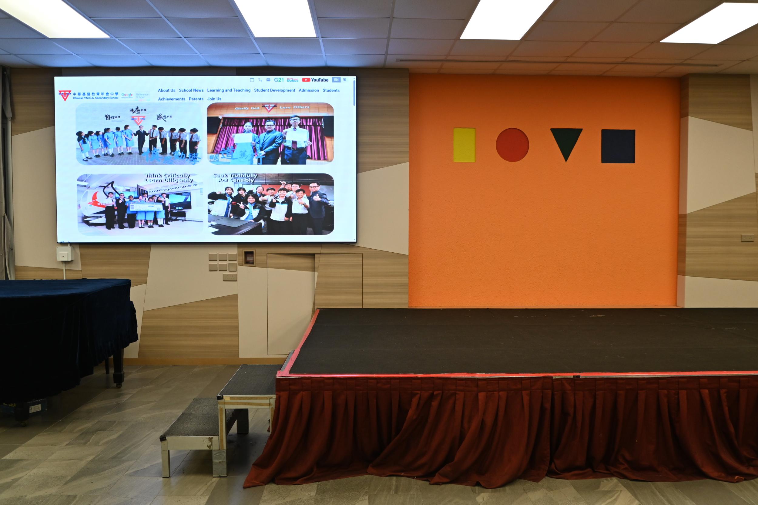 To provide the best access to the worldwide knowledge base of the Internet, CYMCASS has invested an elaborate networking system with the most up-to-date technological support. The CYMCASS campus is covered with broadband and Wi-Fi service, and a computer, projector, television set and netbooks are installed in all classrooms. Apart from regular classrooms, special rooms such as Drama Centre, Chinese Culture Centre, Visual Arts Room, IT Music Room, Recording Room, Home Economics Room, Gymnasium, STEM Room, AEROSTEM Learning Centre, Conference Hall, and School Hall, with a seating capacity of over one thousand, can also be found at our seven-storey campus.