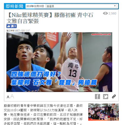 (摘自:香港學界精英籃球Facebook網頁 2017年12月24日)