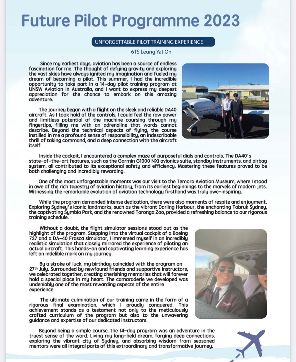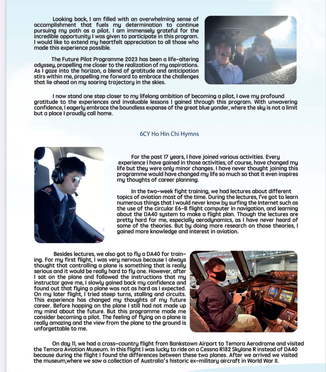 *Attached are the articles shared by two student pilots who joined the flight training programs. They have become S6 students.