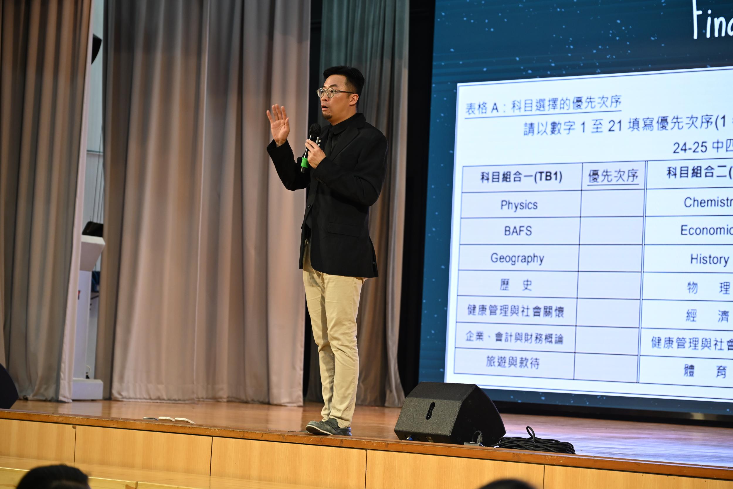 2025–2026 年度中三家長晚會於 12 月 5 日晚上舉行。簡介環節旨在介紹中四選科的流程,以及中三學生和家長需要留意的重要要求。校長張富華博士首先在會上致以親切的問候。林友謙老師提醒學生和家長,在符合學校要求的同時,應根據興趣作出慎重的選科決定。升學及就業輔導主任趙嘉銦老師及李思敏老師亦向與會者講解選修科目趨勢,以及未來升學和職涯發展的可能方向。最後,國際考試統籌主任李耀星老師簡介了多項本校推廣的國際英語考試,說明如何藉此提升學生的英語能力。整個會議內容非常充實,同時亦體現了學校對學生及家長的關懷、支持與重視。