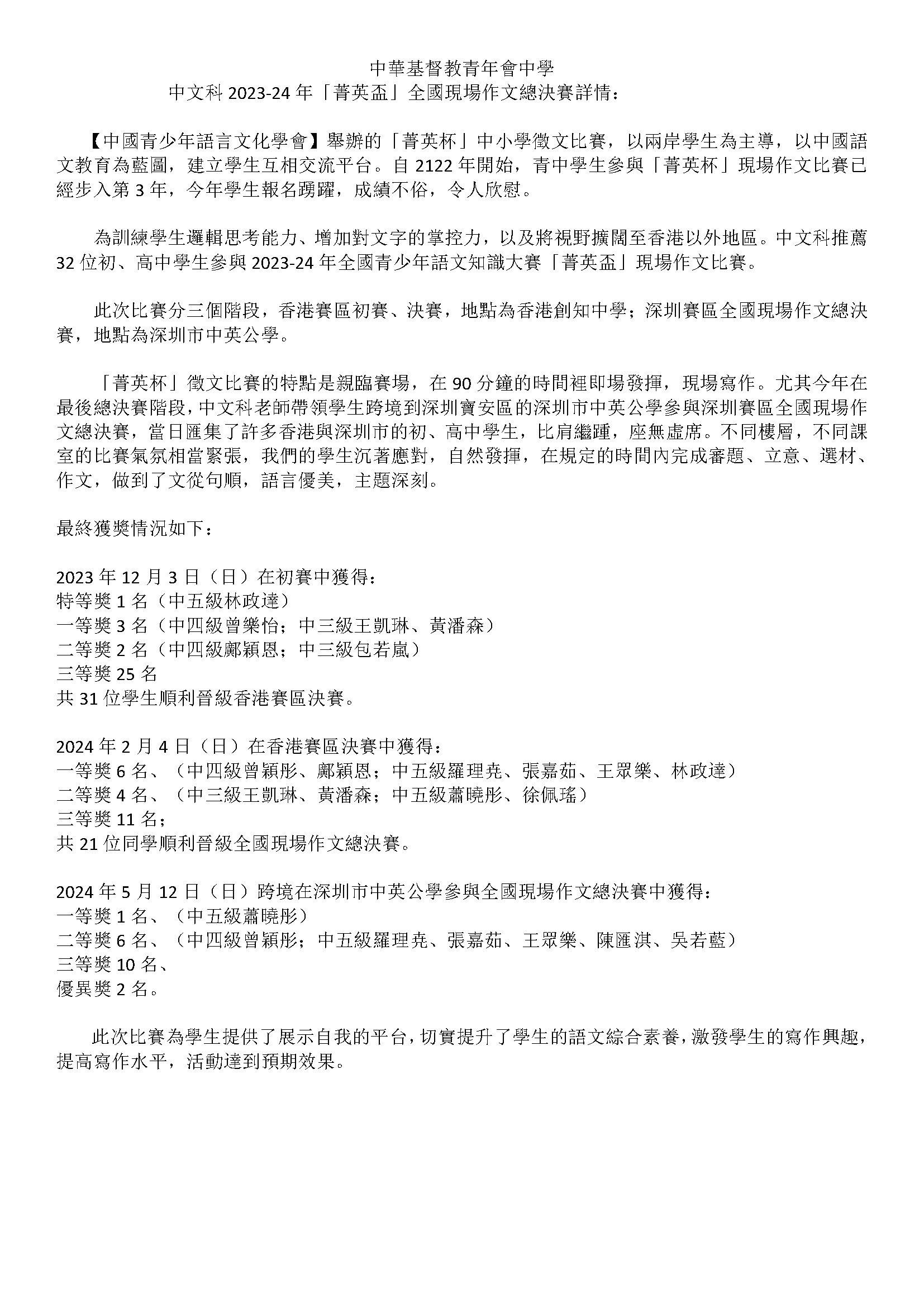 Academic Year 2023 - 2024 Date Sun, 12/17/2023 - 12:00 Achievement Type Academic Awards Achievement Group Team