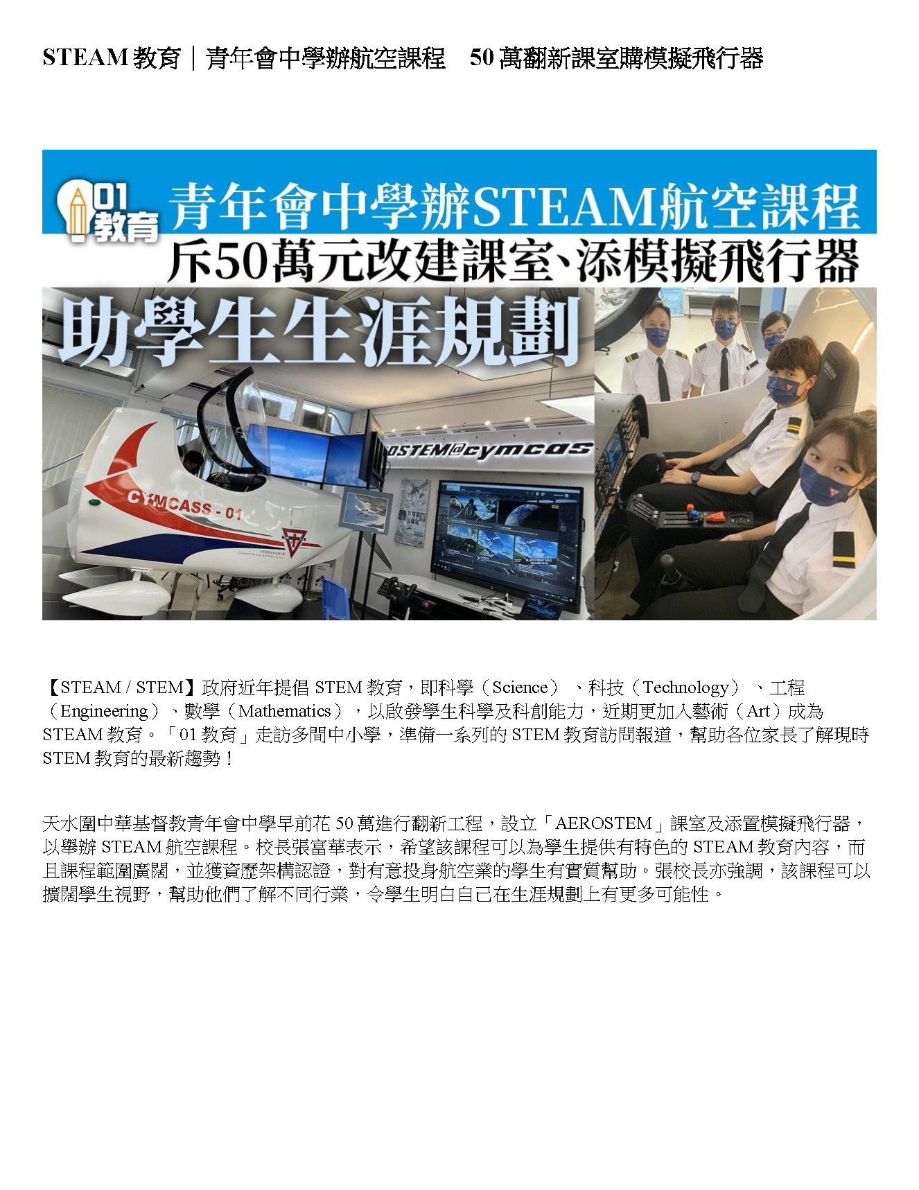 Chinese Y.M.C.A. Secondary School AEROSTEM Education. The first DA40 flight simulator in Hong Kong school to support the Career Life Planning.