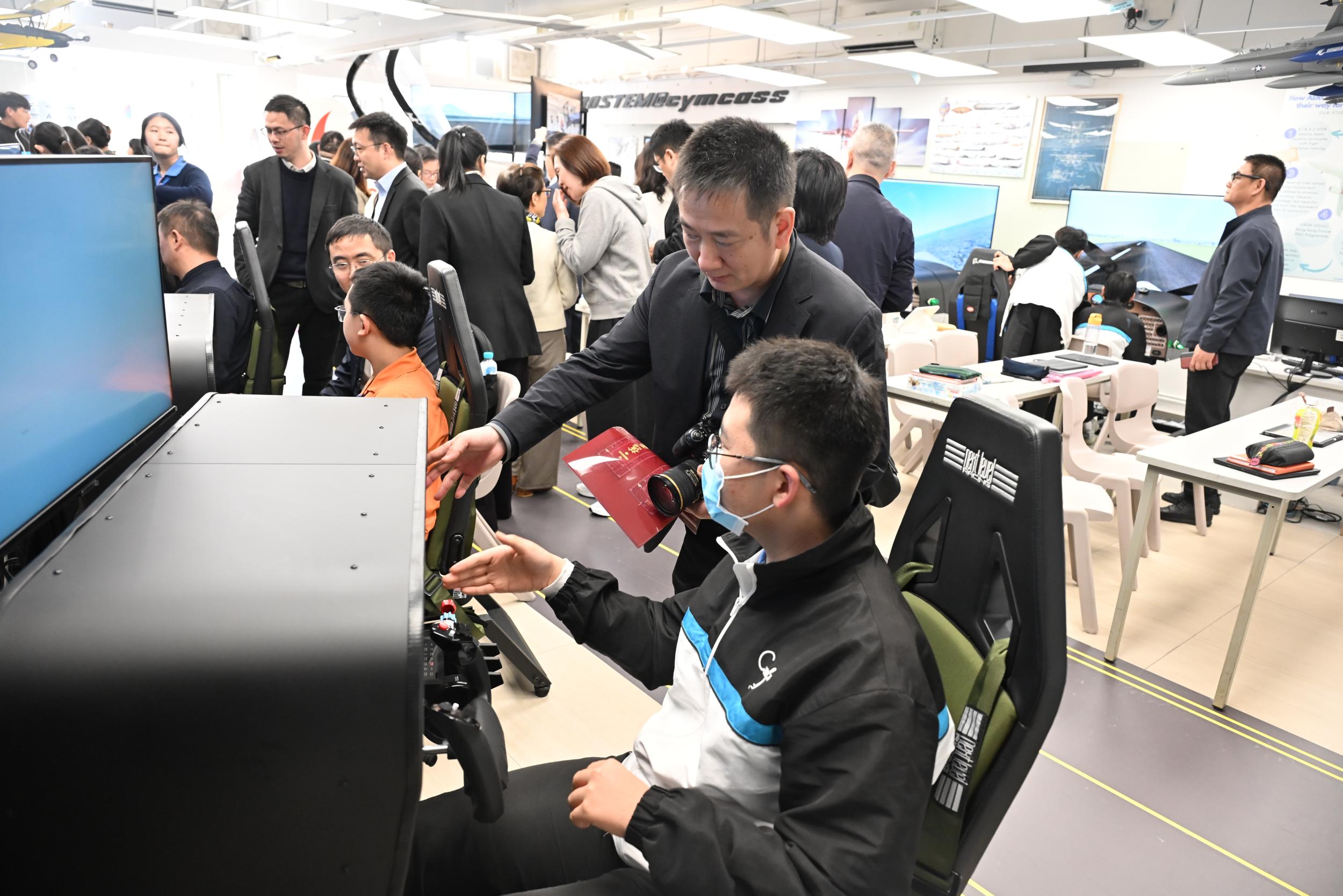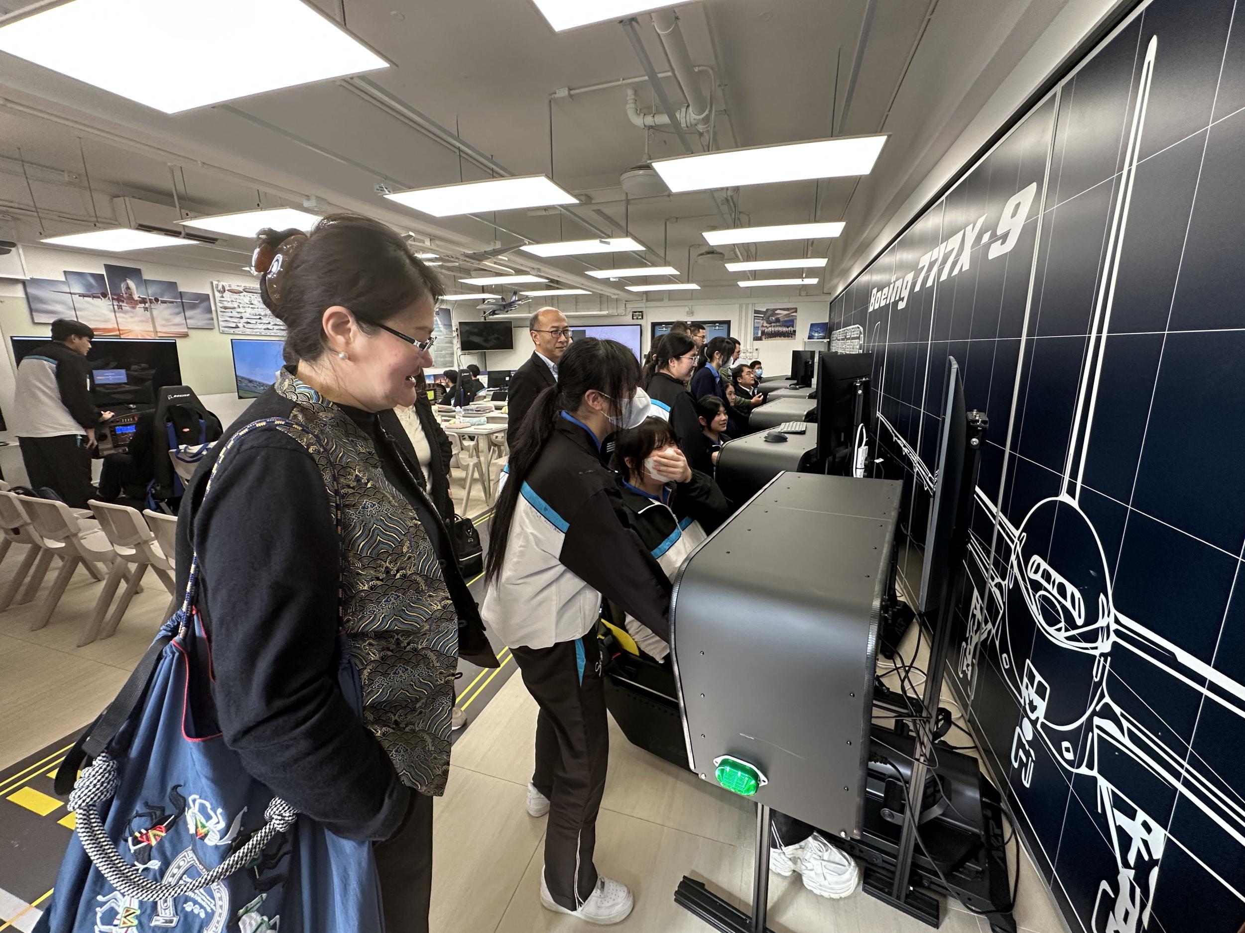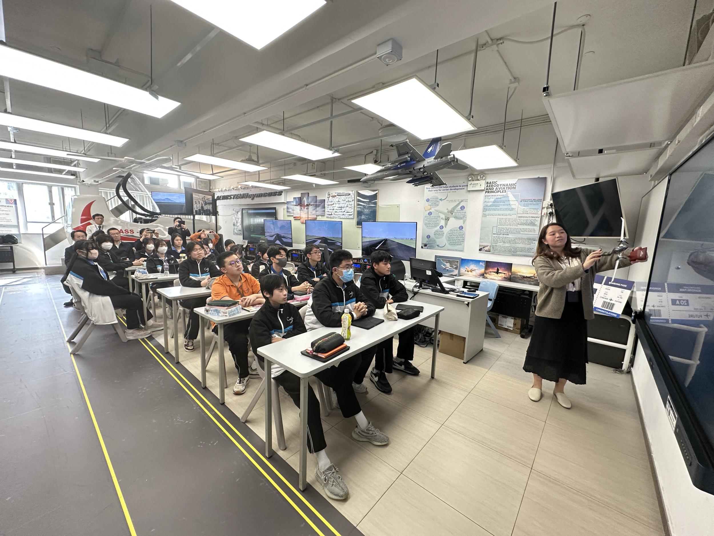 On that day, our school designed a series of activities themed "Applying STEM in the Classroom," which included observation sessions for the English Language, Mathematics, and STEM education subjects. Particularly in the field of STEM education, the visitors had the opportunity to experience a flight simulation learning activity.
