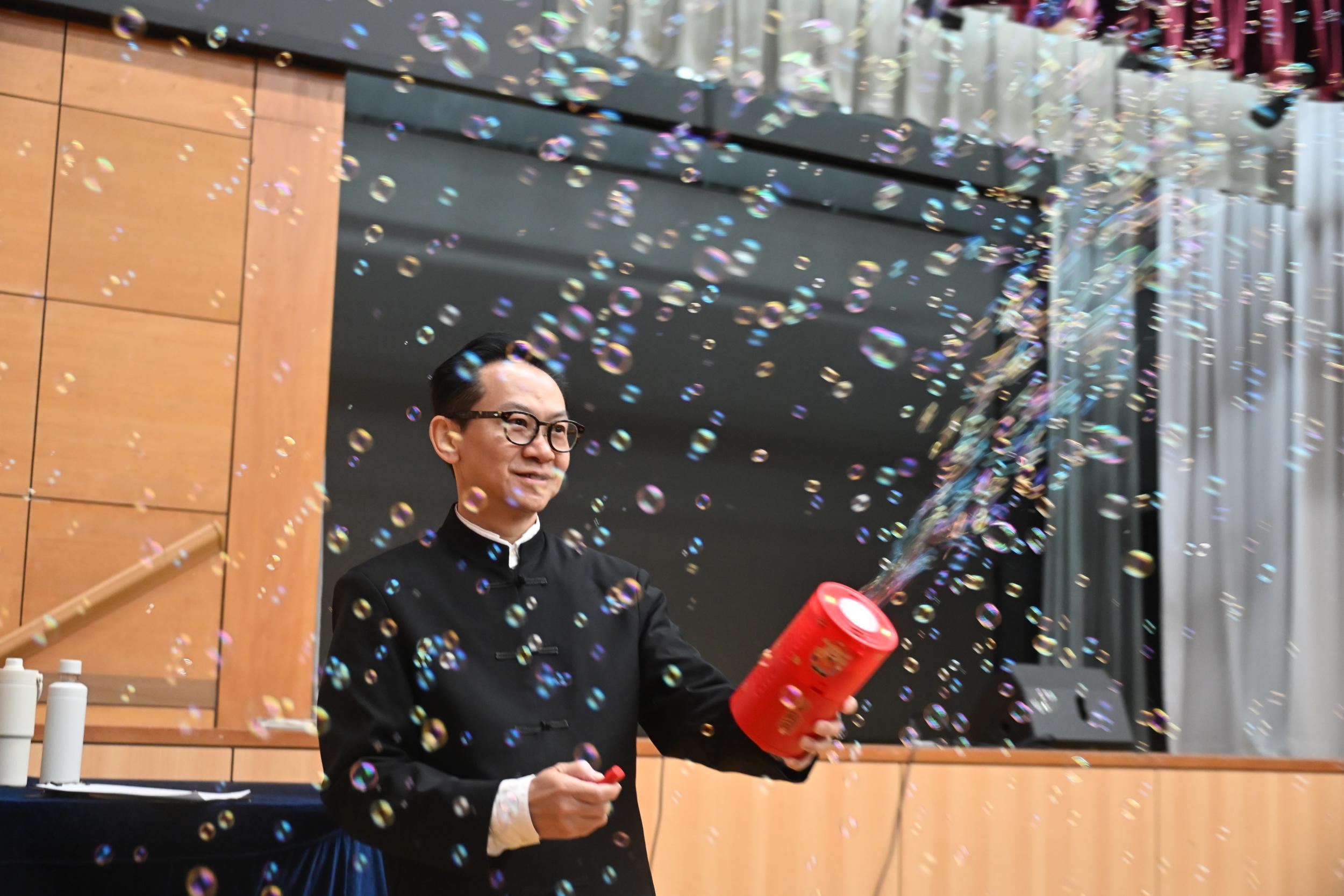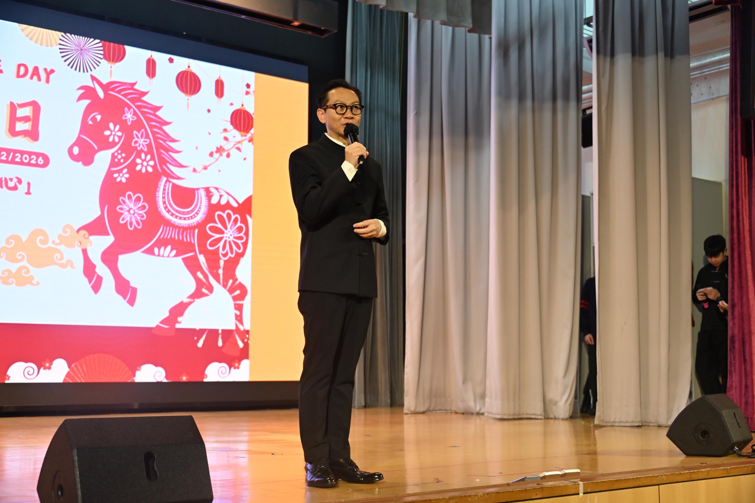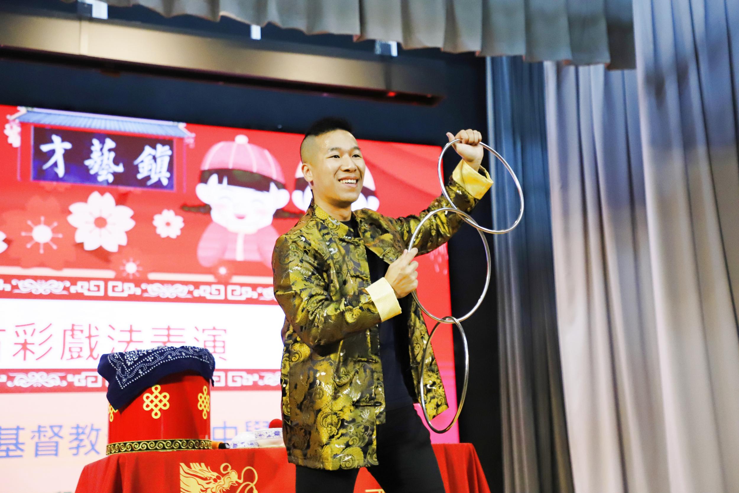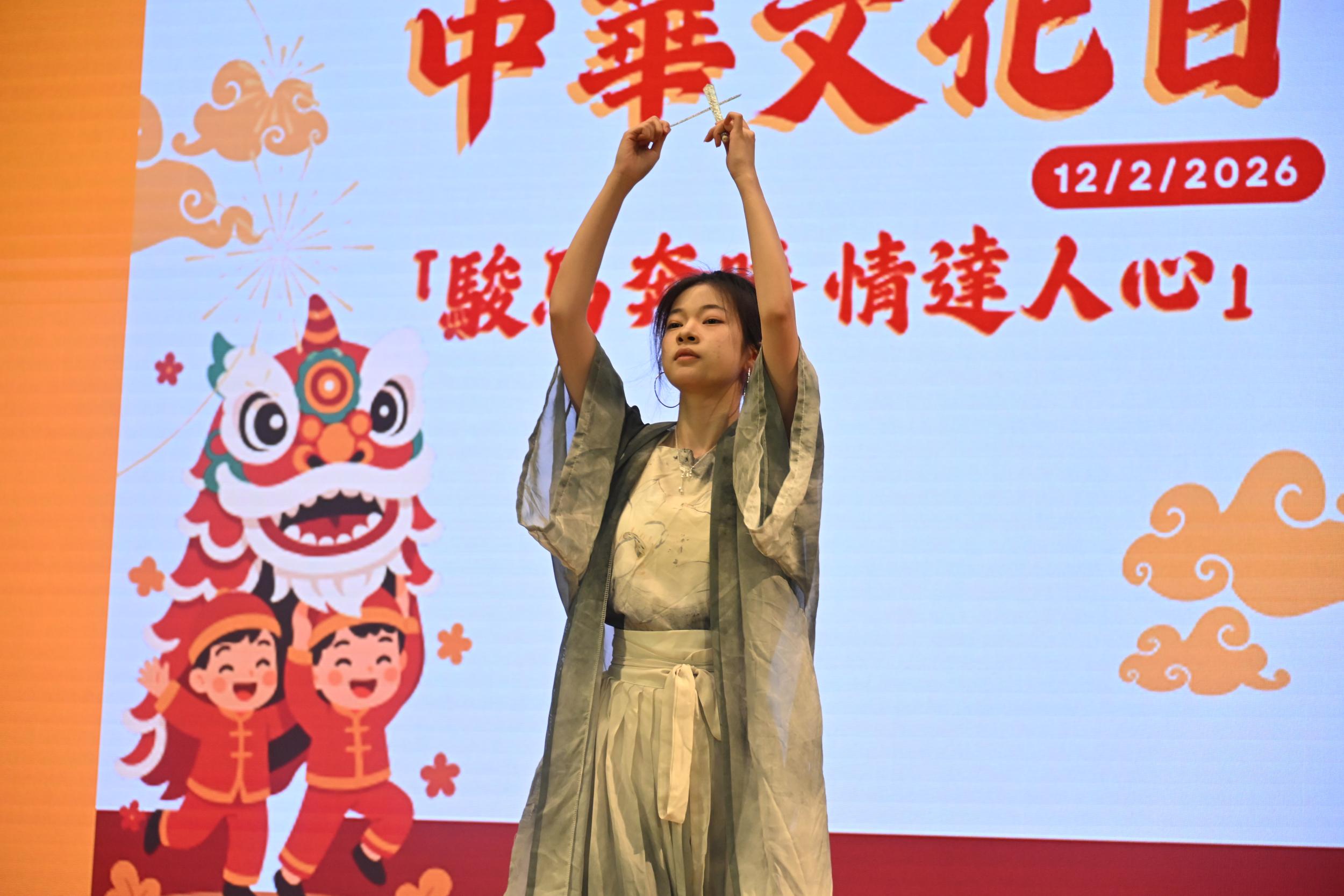 Date 2026-02-12 中華文化日 駿馬奔騰 情達人心 (一) 開幕典禮 (二) 表演節目 1 中國古彩戲法表演 2 論語故事: <<子為父隱>> (三) 工作坊 1 拼貼裝飾糖果碟 2 乾花中草藥畫架 3 剪紙工藝 4 彩虹書法 5 百家被製作 6 糖畫製作 7 香膏製作 8 線繩工藝掛飾製作 9 迷你漆扇製作 10 中國書法 11 傳統食品製作 12 砵仔糕製作 13 華服摺紙工作坊 14 造紙術體驗 (四) 攤位遊戲