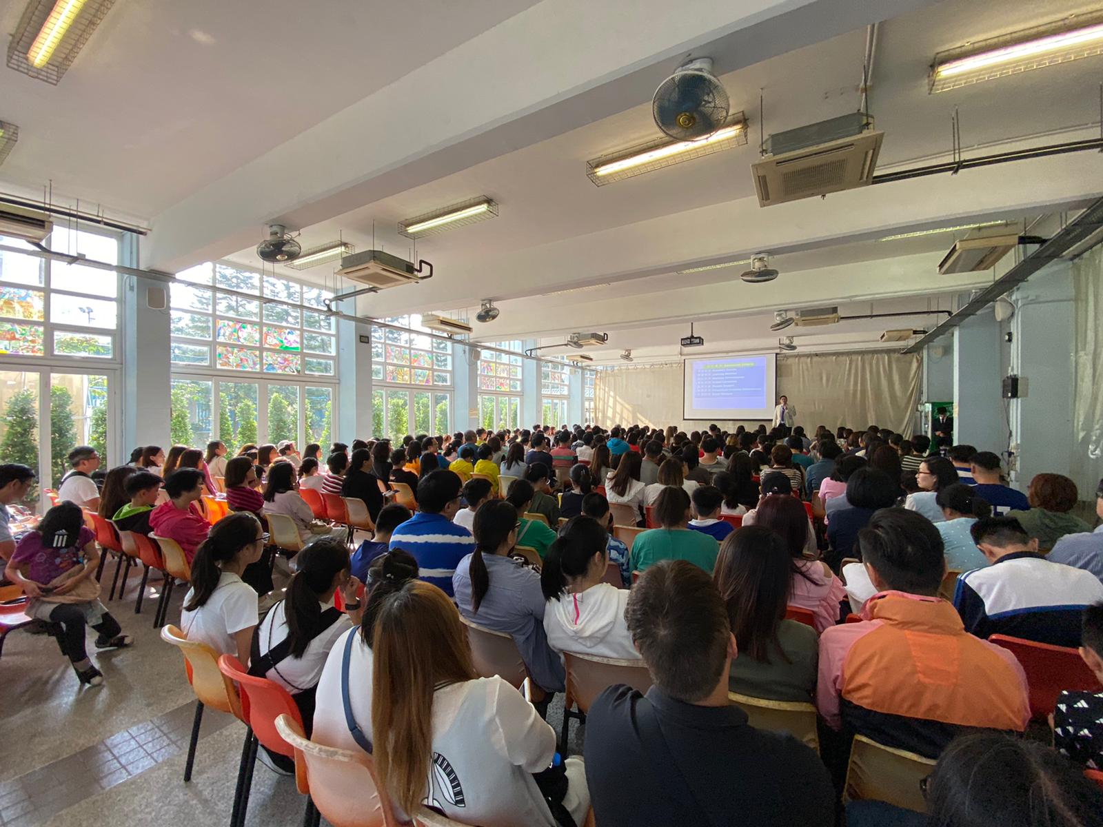 本校於11月23日(星期六)下午舉行中一簡介會,報名出席人數逾3000人。當天,禮堂及多個進行直播的場地均座無虛席,盛況空前。